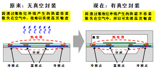這次,世界首次成功將熱電堆真空封裝在芯片內。采用真空封裝即可避免將熱電堆轉換的熱能散失在空氣中,使金屬接點之間的溫差變大,從而可實現更高的靈敏度。