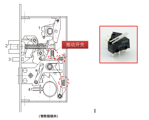 智能鎖是現(xiàn)在市場需求量非常大的一款智能產(chǎn)品,而且市場上的智能鎖種類繁多,價格不一,下面為大家介紹一下智能鎖中的一個起著靈魂作用的零件——智能鎖微動開關(guān)。微動開關(guān)在智能鎖里,做鎖舌的位置檢測,用以告知IC目前鎖的狀態(tài)——開鎖或關(guān)鎖。