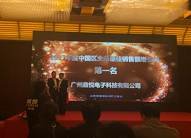 2018年3月15日歐姆龍電子部品(中國)統轄集團代理商年會上頒發的代理商獲獎事項,而我們廣州鼎悅電子科技有限公司榮獲”2017年度中國區業務最佳銷售額增長獎“