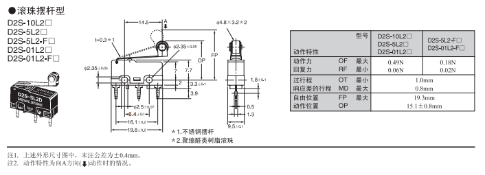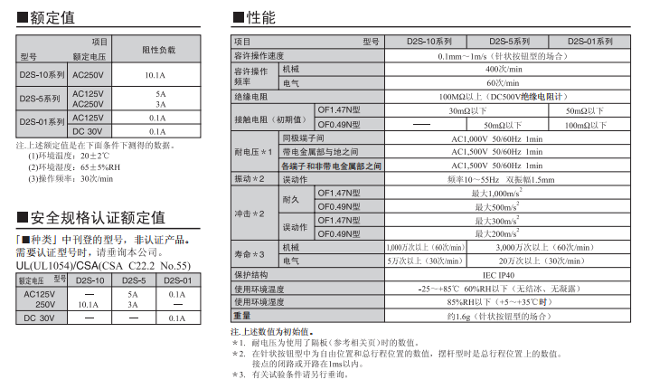 D2SW 密封型超小型基本歐姆龍開關(guān)