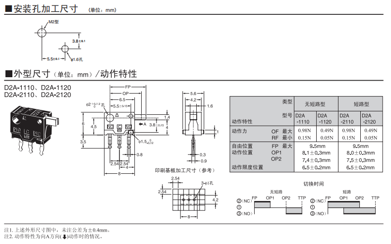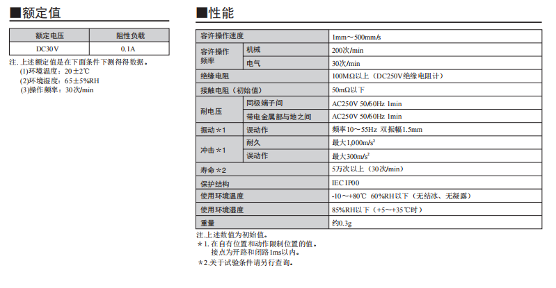 采用按鈕動作式的歐姆龍超小型開關 歐姆龍超小型(高6×寬8×深4.2mm)、輕量(約0.3g)、3mm的長行程。 由于是滑動方式,所以短路、非短路的切換時間可根據(jù)使用用途進行選擇。