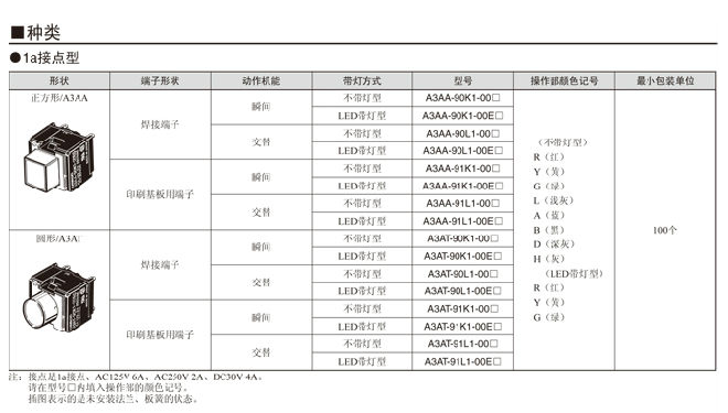 A3A系列 按鈕開關 大容量、緊湊型、小型方體型按鈕開關