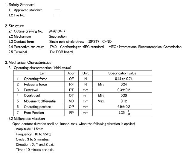 D2FC-F-7N, 克力為:60+/-15G,壽命為500萬次;