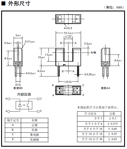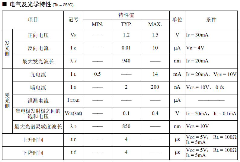 微型光電傳感器[透過型] 凹槽寬度為5mm的通用型 印刷線路板實(shí)裝型 高分辨率(狹片寬度0.5mm)