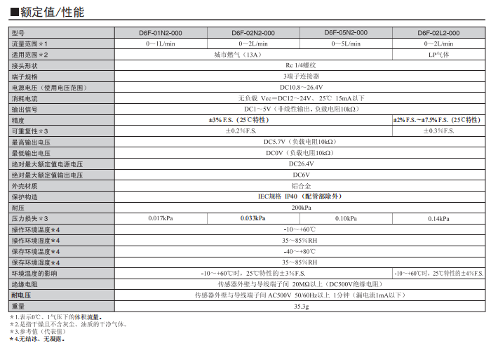 D6F-A7/-N7/-L7燃氣流量歐姆龍傳感器