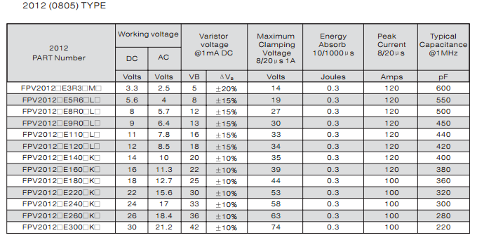 多層片式壓敏電阻器 FPV201209S3R3PMT